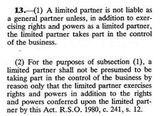 במחוז אונטריו תקפות הוראות "Limited Partnerships Act R.S.O 1990 c.L-13"